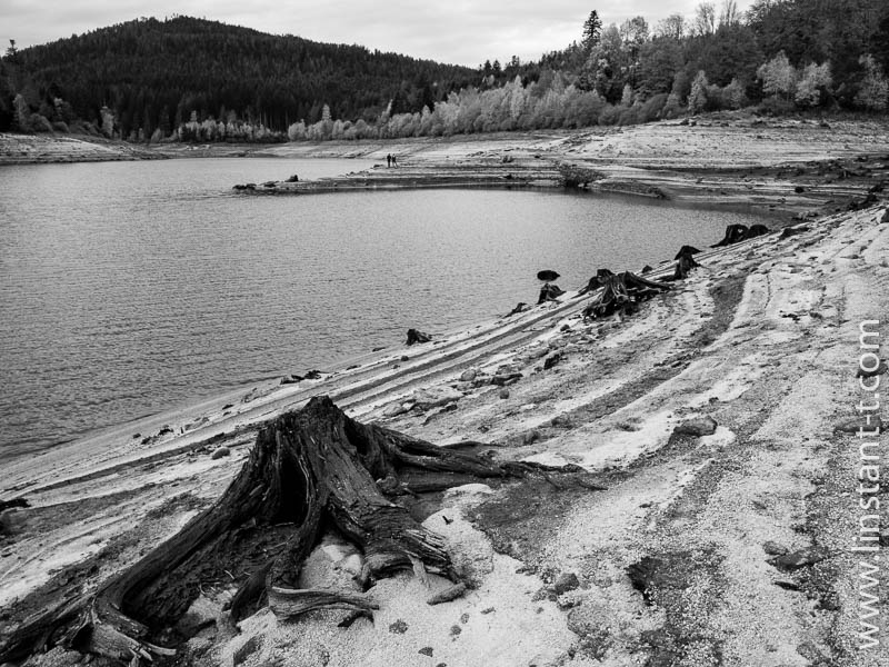 - Allemagne, barrage, Forêt Noire, horizontale, lac, noir et blanc, paysage, plage, souche