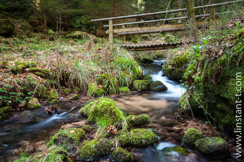 - eau , filé , hiver , horizontale , passerelle , pont , pose lente , rivière , Vosges