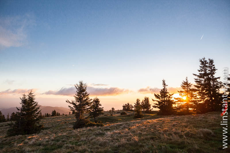 - automne , chaume , Épicéas , horizontale , matin , soleil , sommet , Vosges