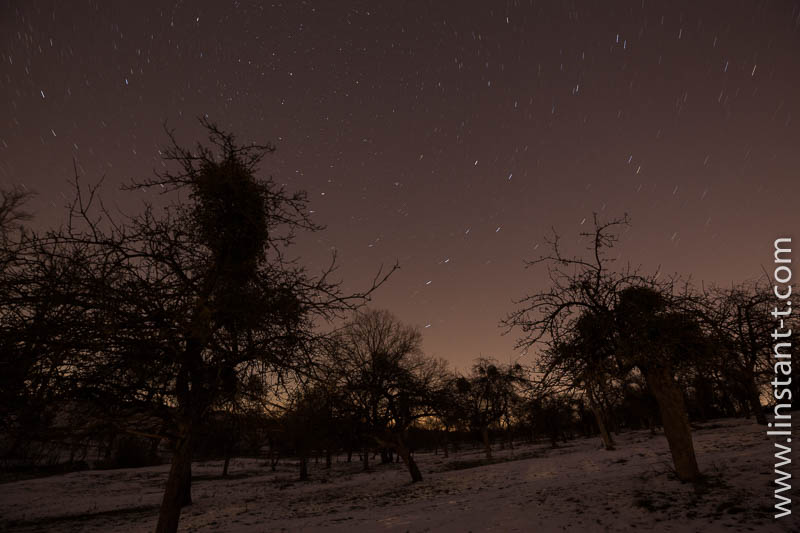 - étoiles , filé , hiver , horizontale , neige , nuit , pose lente , verger