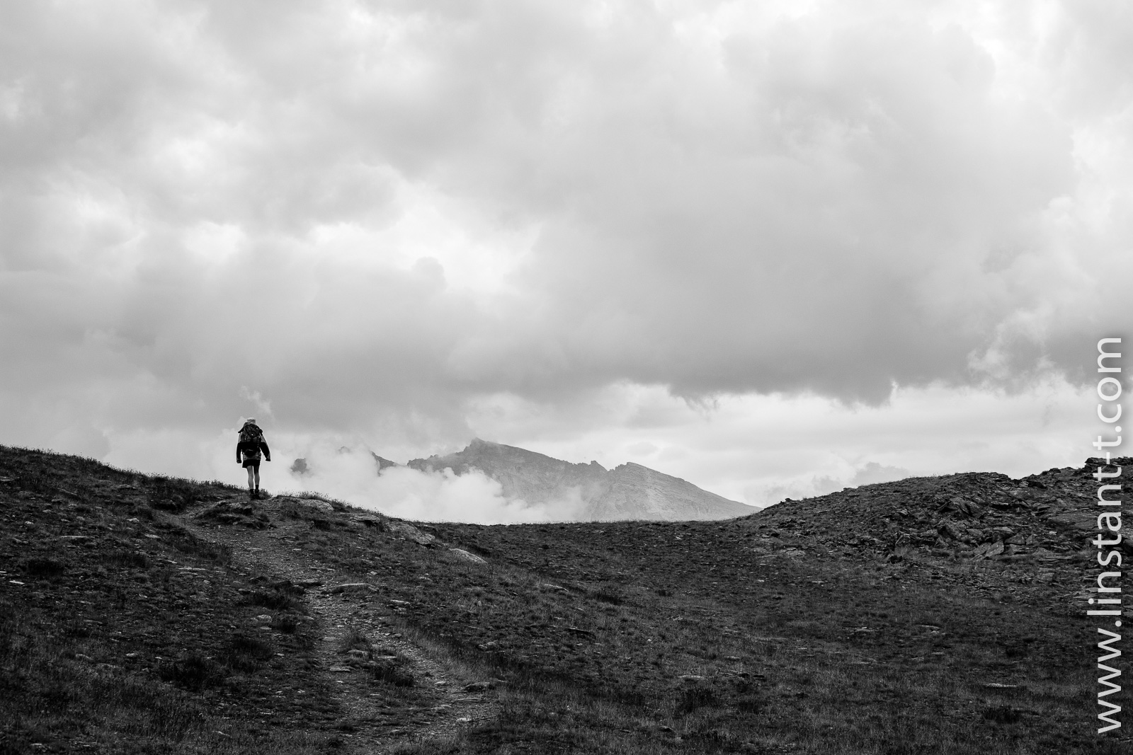 - Alpes , été , horizontale , montagne , N&B , noir et blanc , paysage , personnage , randonnée , sentier