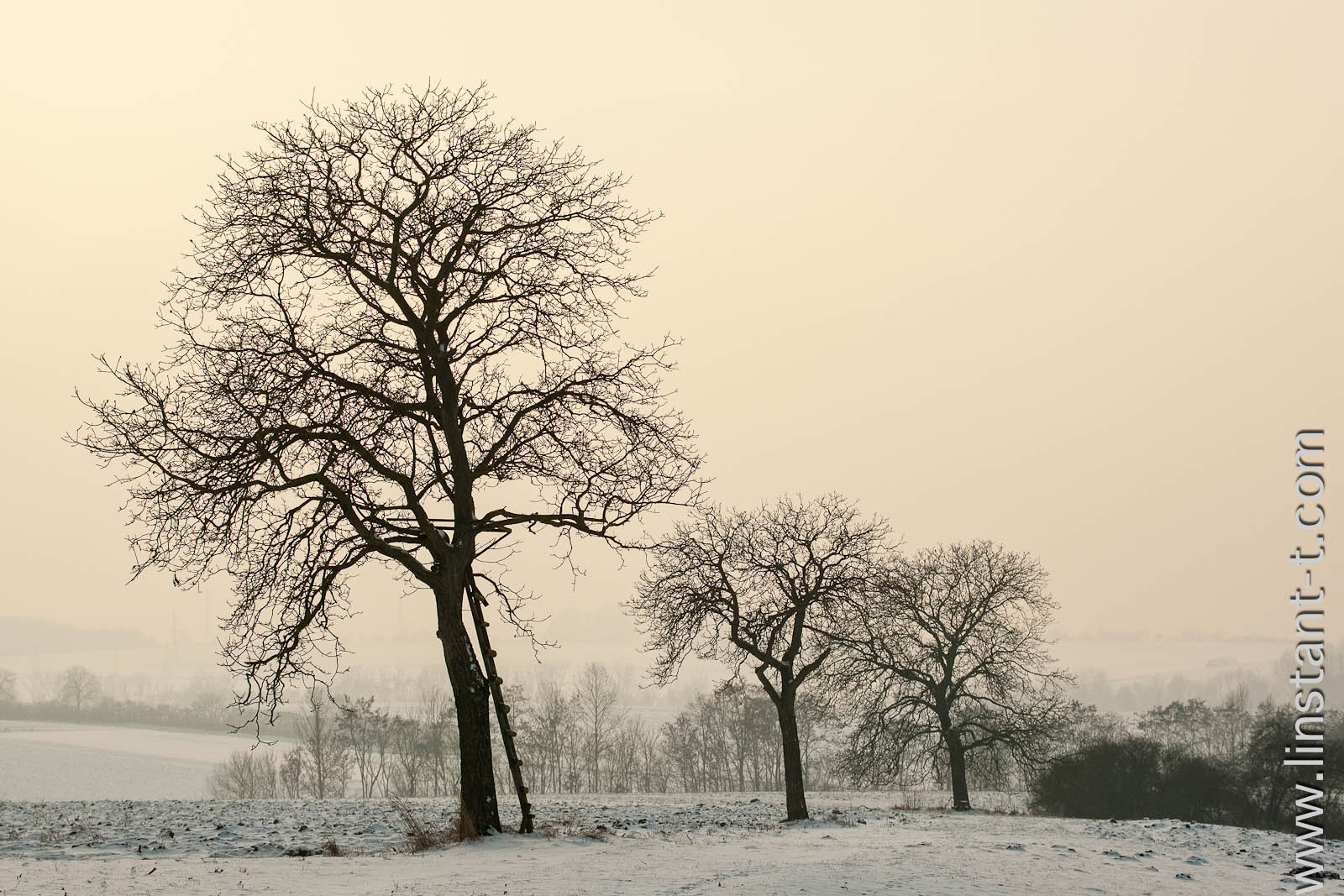 - affût , arbre , horizontale , neige , Zorn