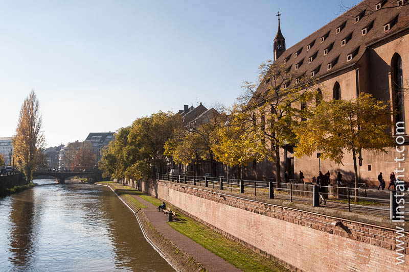 - automne , eau , église , horizontale , paysage , rivière , soleil , Strasbourg , urbain